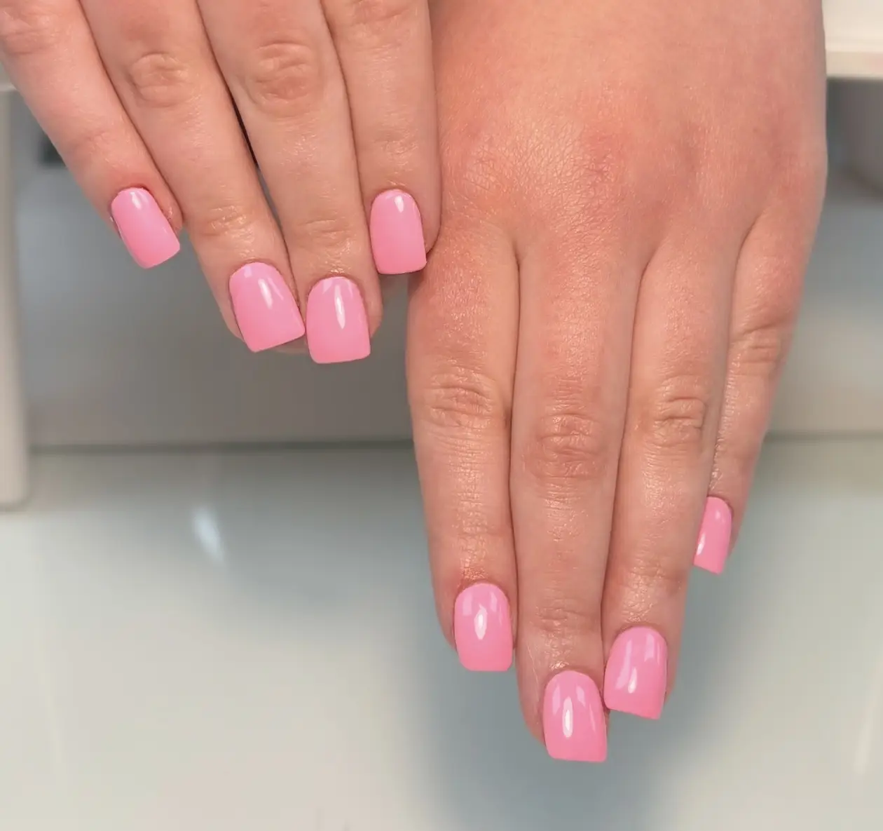 A simple, practical, and stylish set of short acrylic nails. Strong, polished, and easy to maintain while still looking flawless. 💅 Short Nail length sits at or just slightly past the fingertip.